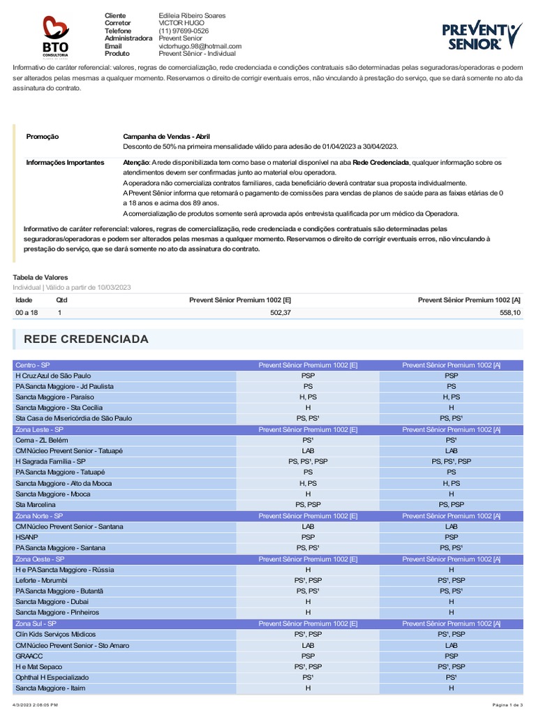 Zona Norte - SP Prevent Sênior Premium 1002 [E] Prevent Sênior Premium 1002 [A]