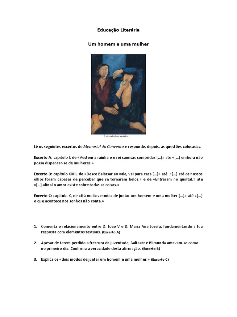 Lê os seguintes excertos de Memorial do Convento e responde, depois, as questões colocadas.