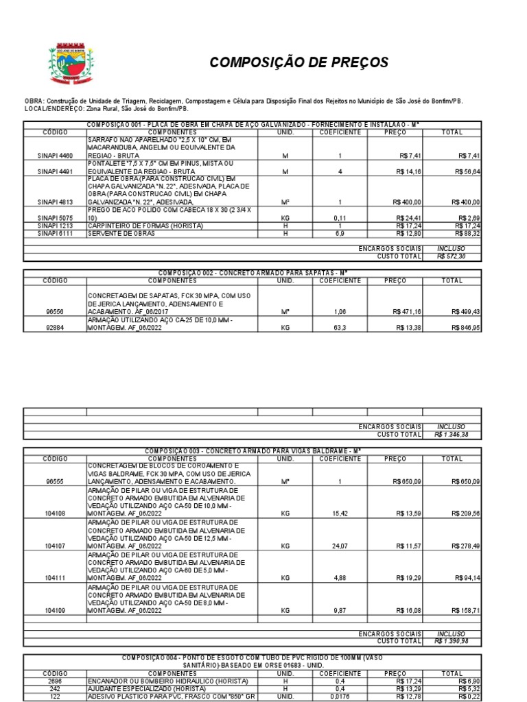 COMPOSIÇÃO DE PREÇOS