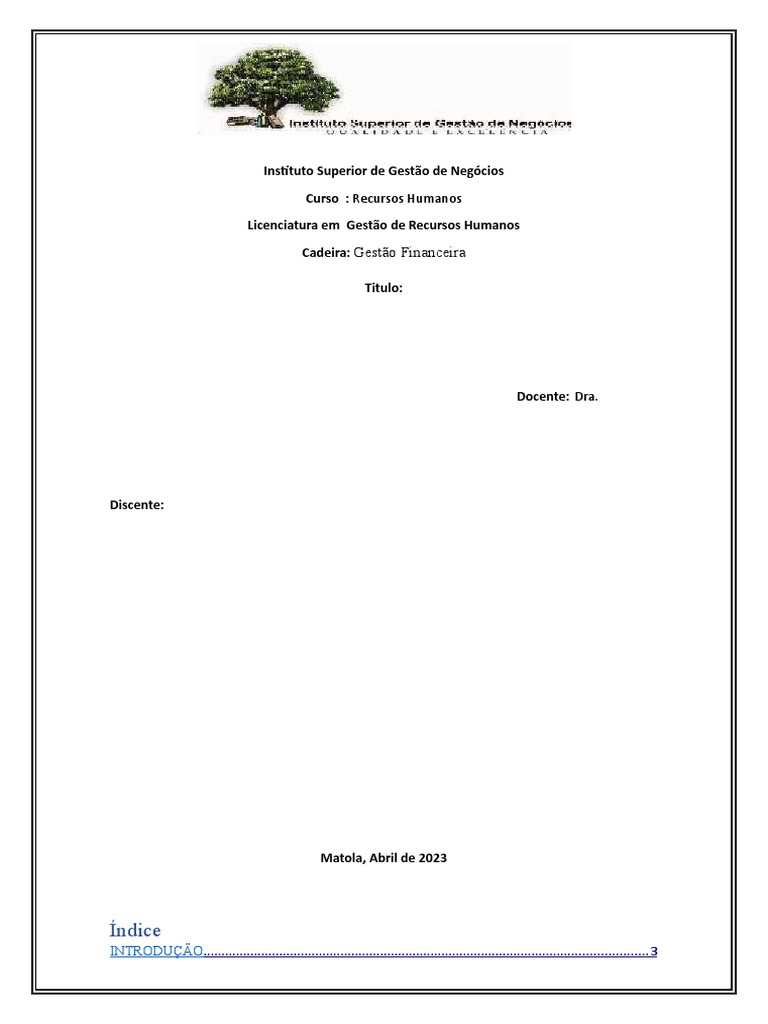O presente trabalho de pesquisa enquadra se na cadeira de Gestão Financeira lecionada