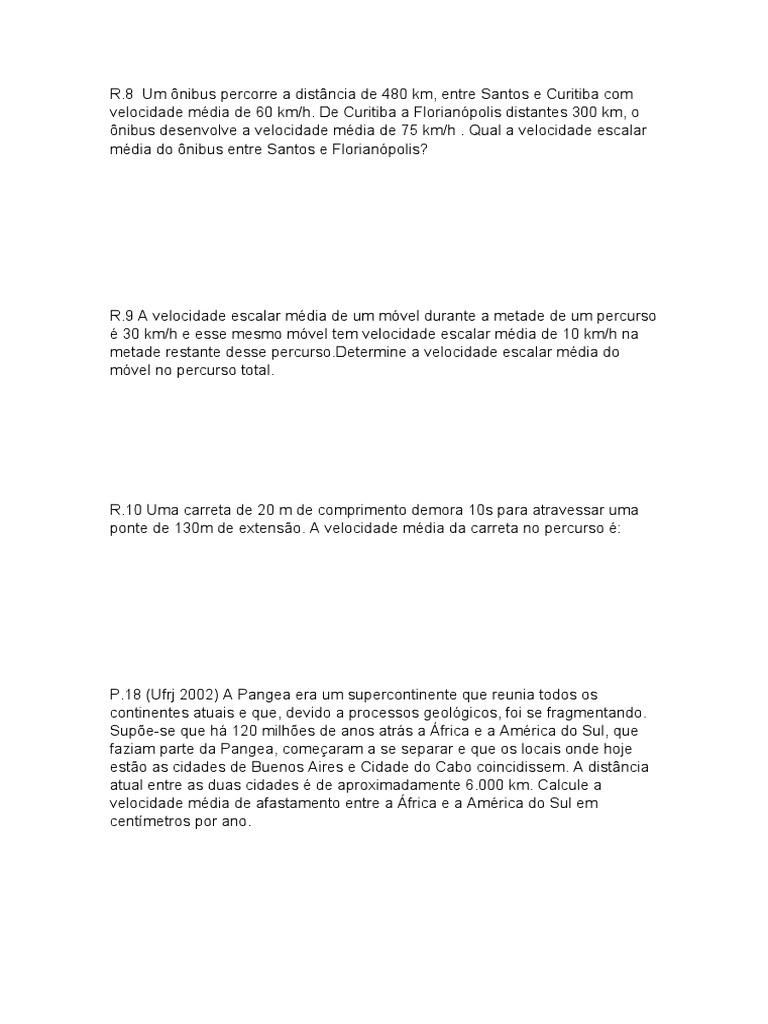 R.9 A velocidade escalar média de um móvel durante a metade de um percurso