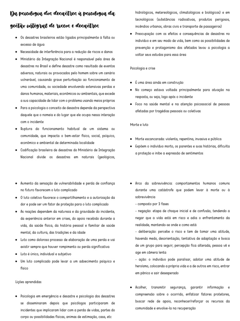 • Psicologia em emergência e desastre e psicologia dos desastres compreensão sobre o ocorrido, enfatizar fatores protetores,