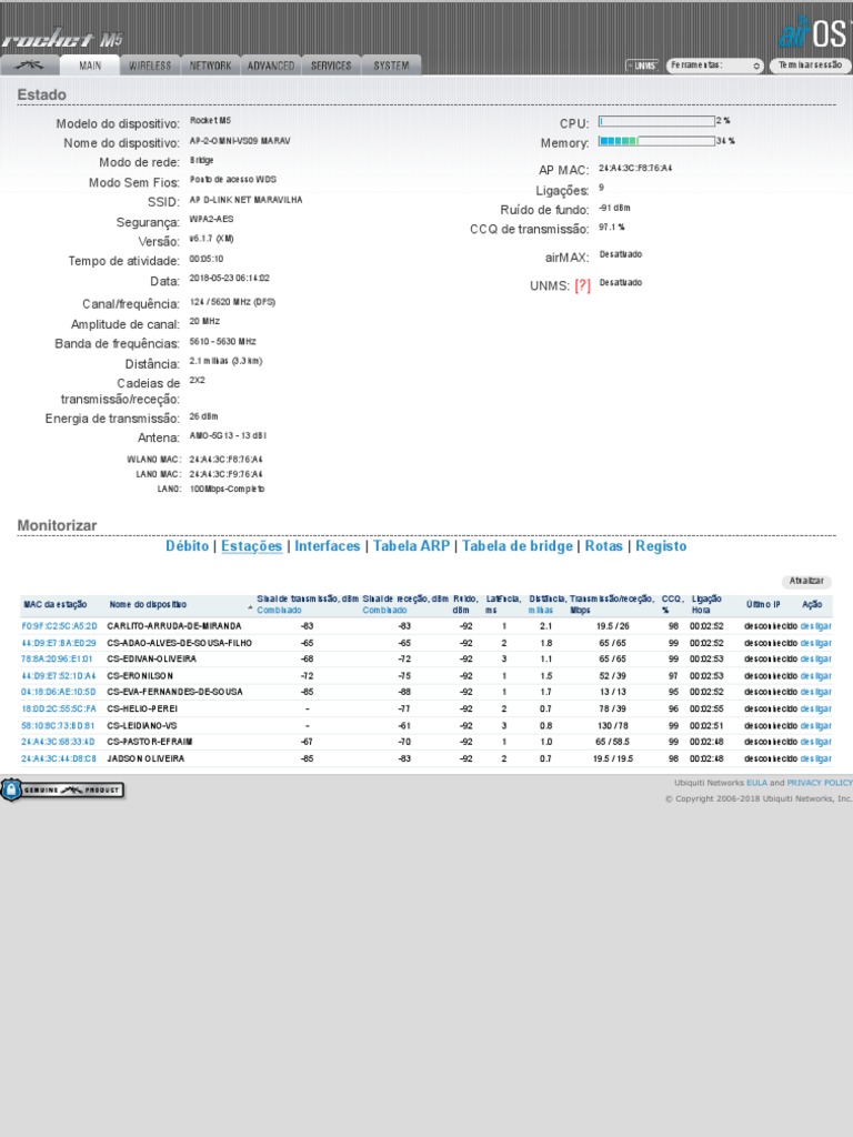 Modelo do dispositivo: Rocket M5 CPU: 2%