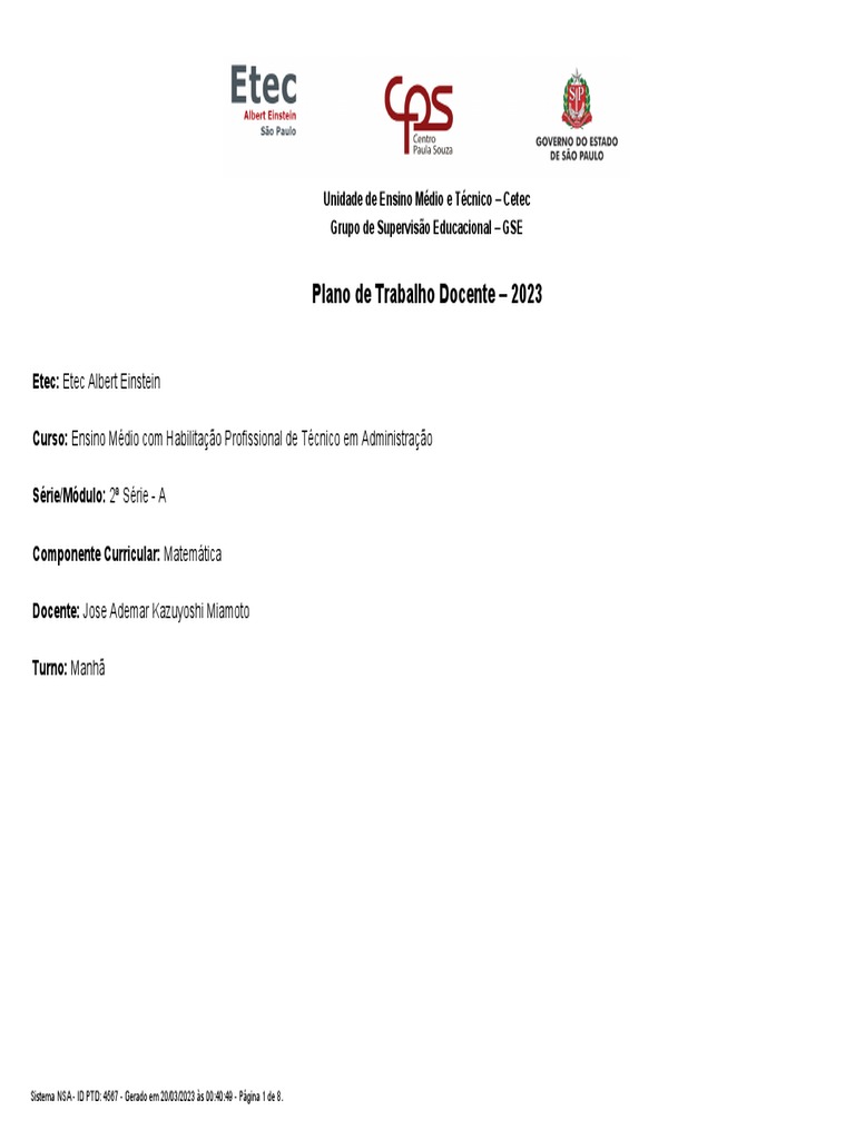 Plano de Trabalho Docente – 2023