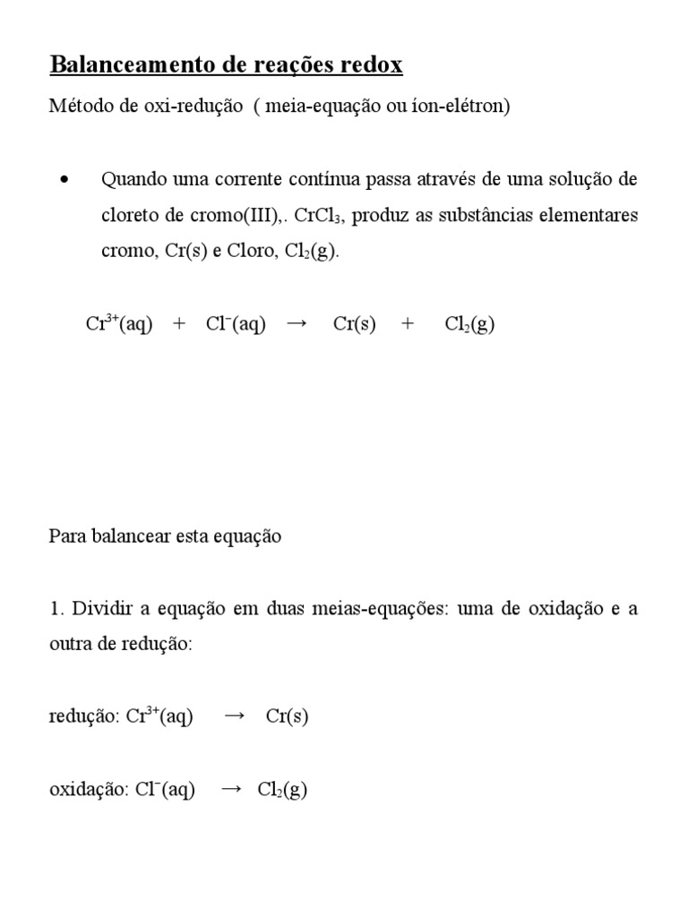 Método de oxi-redução ( meia-equação ou íon-elétron)