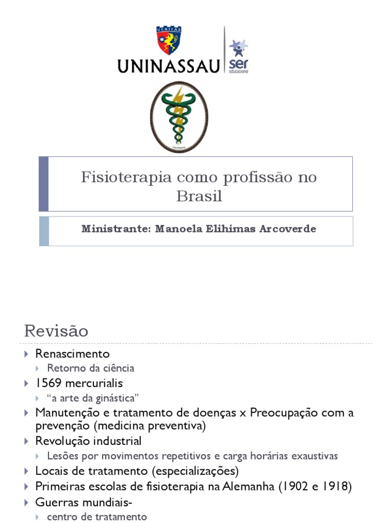 1951→ planejou o primeiro curso de fisioterapia que na época era curso técnico USP