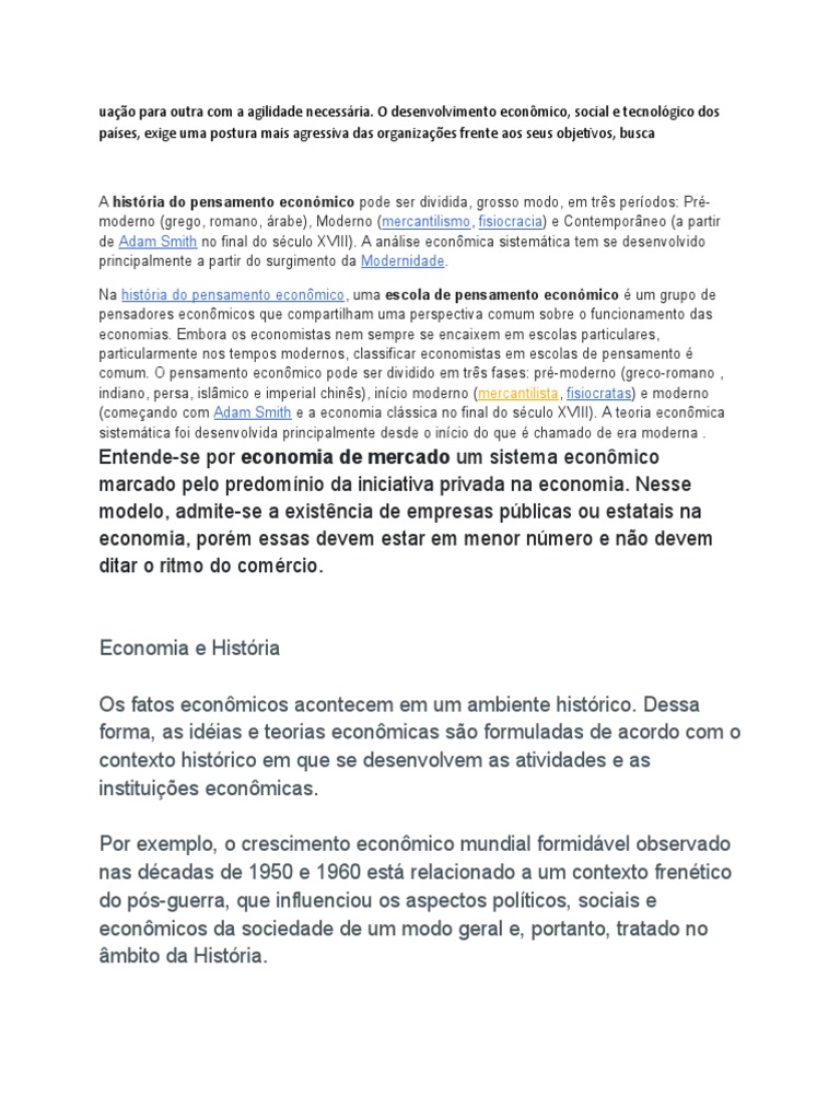 (começando com Adam Smith e a economia clássica no final do século XVIII). A teoria econômica