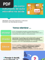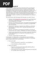 E importante referir que, educar para a saúde é um processo dinâmico, constante