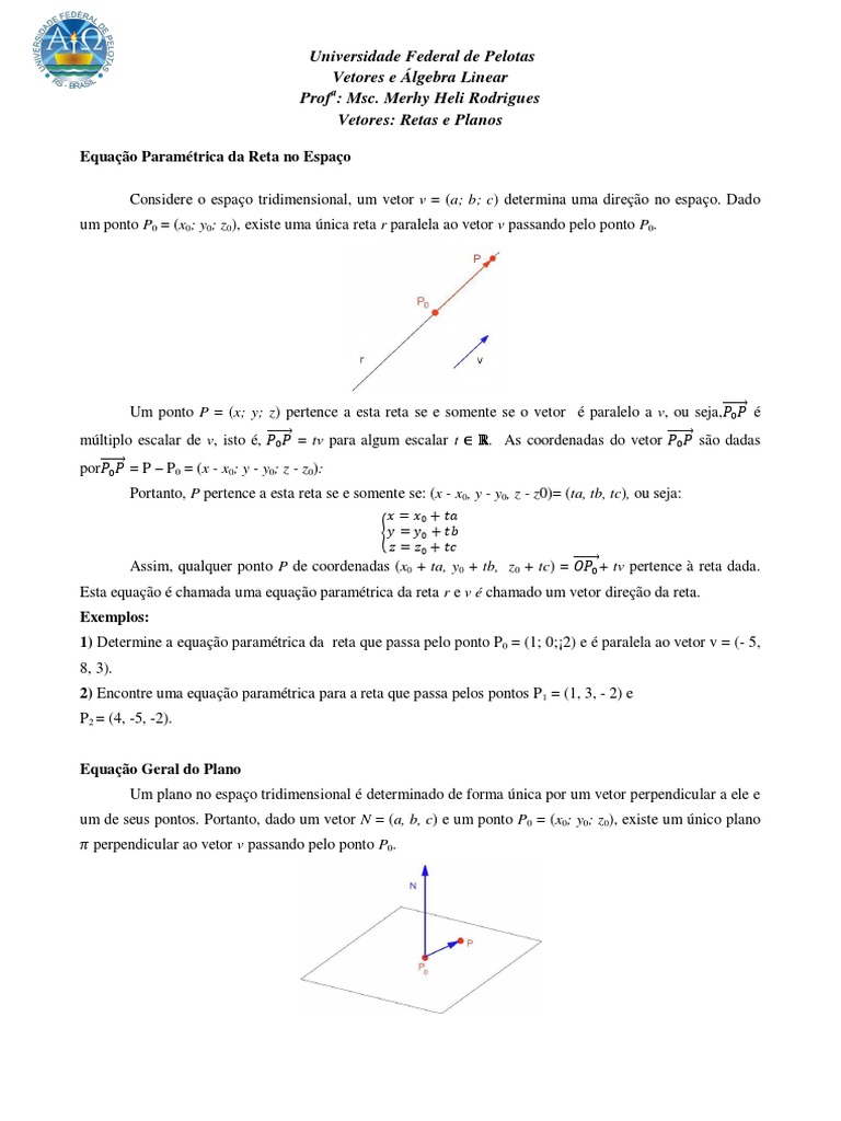 u. N = t(v . N) + s(w . N) = 0, o que mostra que o segmento orientado com ponto inicial P0 representante de u