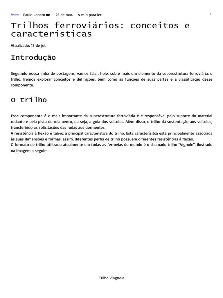 trilho. Iremos explorar conceitos e definições, bem como as funções de suas partes e a classificação desse