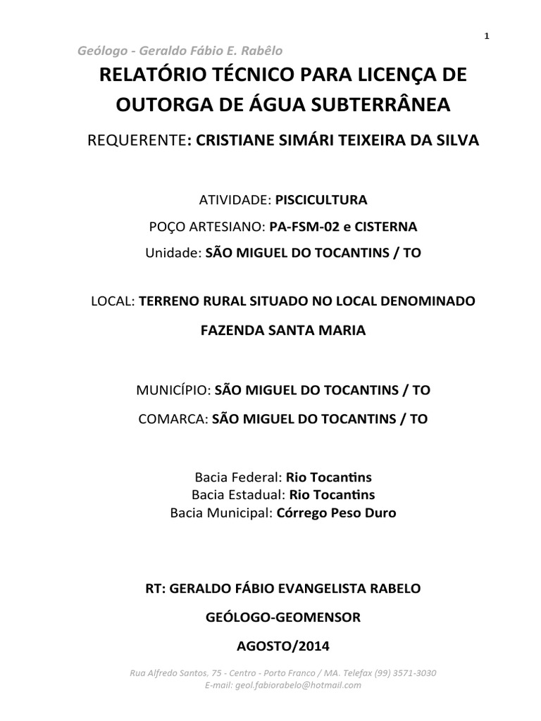 Tocantins / TO. Visando atender algumas dúvidas sobre a atividade geológica e hidrogeológica da