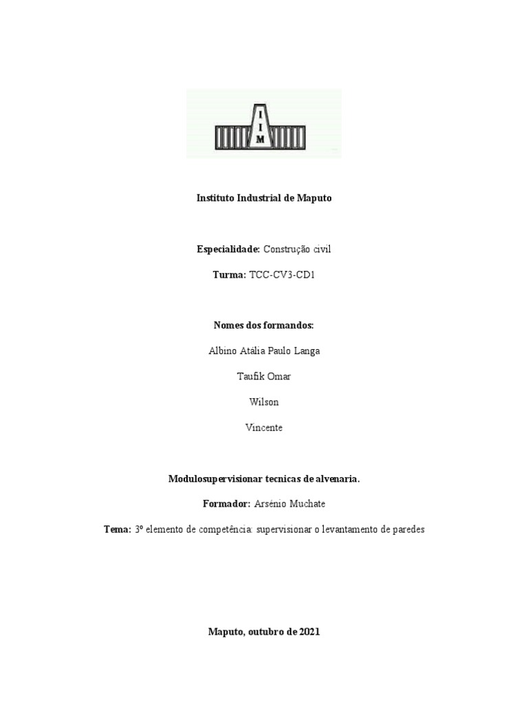 Tema: 3º elemento de competência: supervisionar o levantamento de paredes