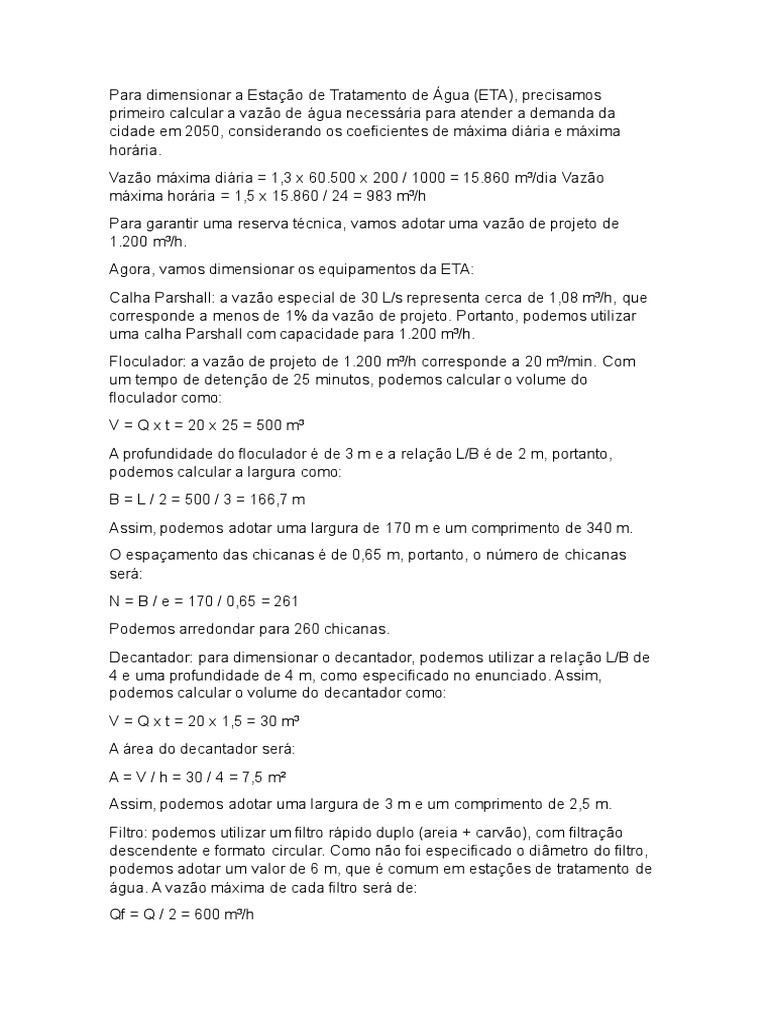 Para dimensionar a Estação de Tratamento de Água (ETA), precisamos