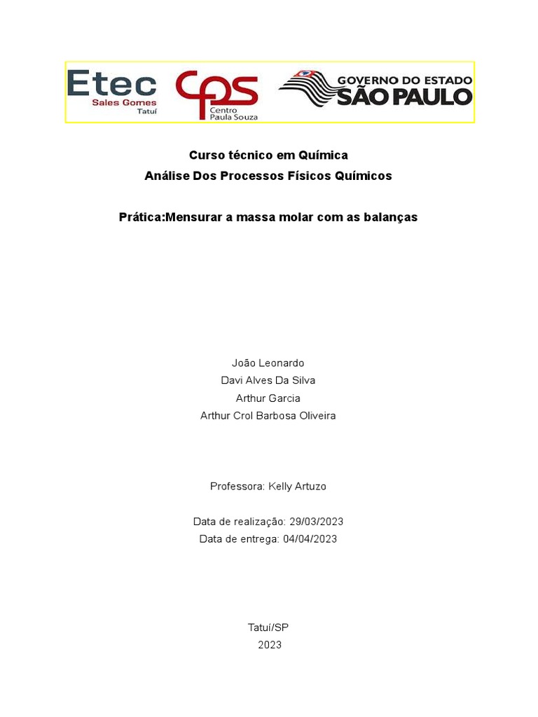 Prática:Mensurar a massa molar com as balanças