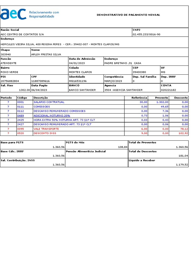 DEMONSTRATIVO DE PAGAMENTO MENSAL