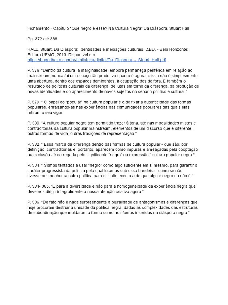P. 384- 385. “É para a diversidade e não para a homogeneidade da experiência negra que