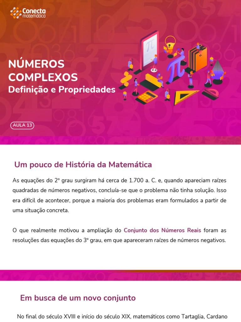 - compreender os conceitos envolvidos no estudo de números complexos na forma algébrica