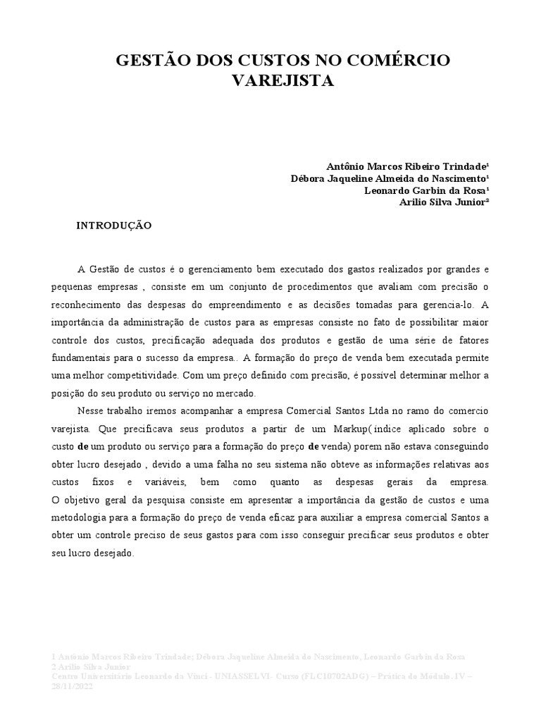 GESTÃO DOS CUSTOS NO COMÉRCIO