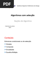 Em Algoritmo temos 3 formas de representar a estrutura condicional: