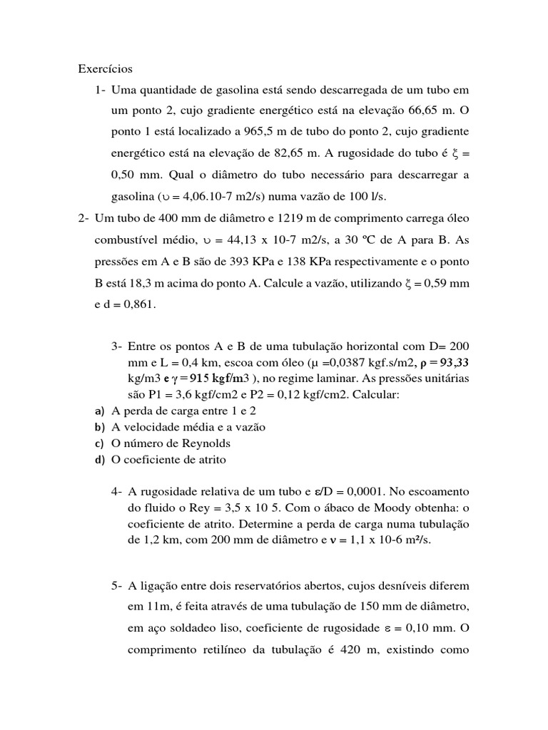 mm e L = 0,4 km, escoa com óleo (µ =0,0387 kgf.s/m2, ρ = 93,33