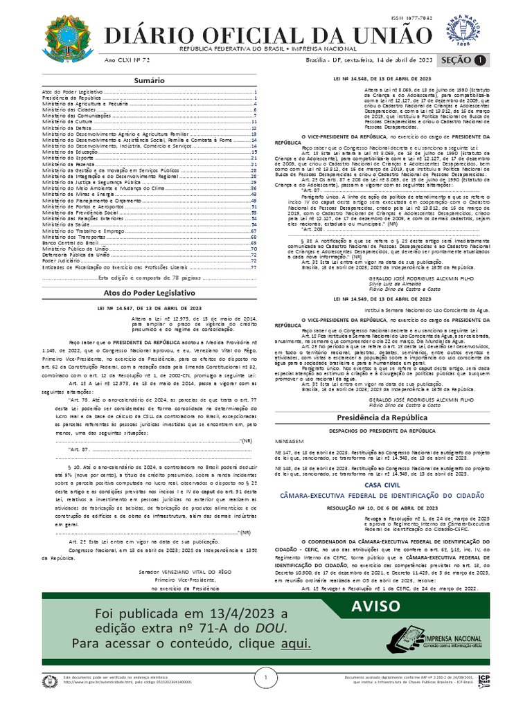 Seção 1 ISSN 1677-7042 Nº 72, sexta-feira, 14 de abril de 2023