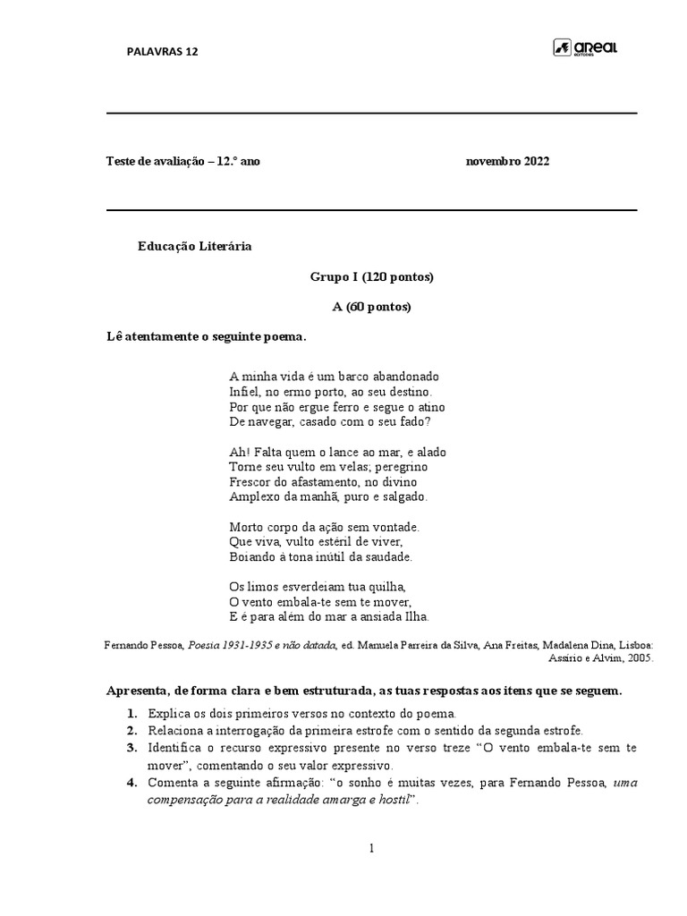 1. Explica os dois primeiros versos no contexto do poema.
