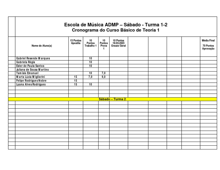 Escola de Música ADMP – Sábado - Turma 1-2