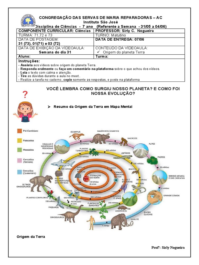 Disciplina de Ciências - 7 ano (Referente a Semana - 31/05 a 04/06)