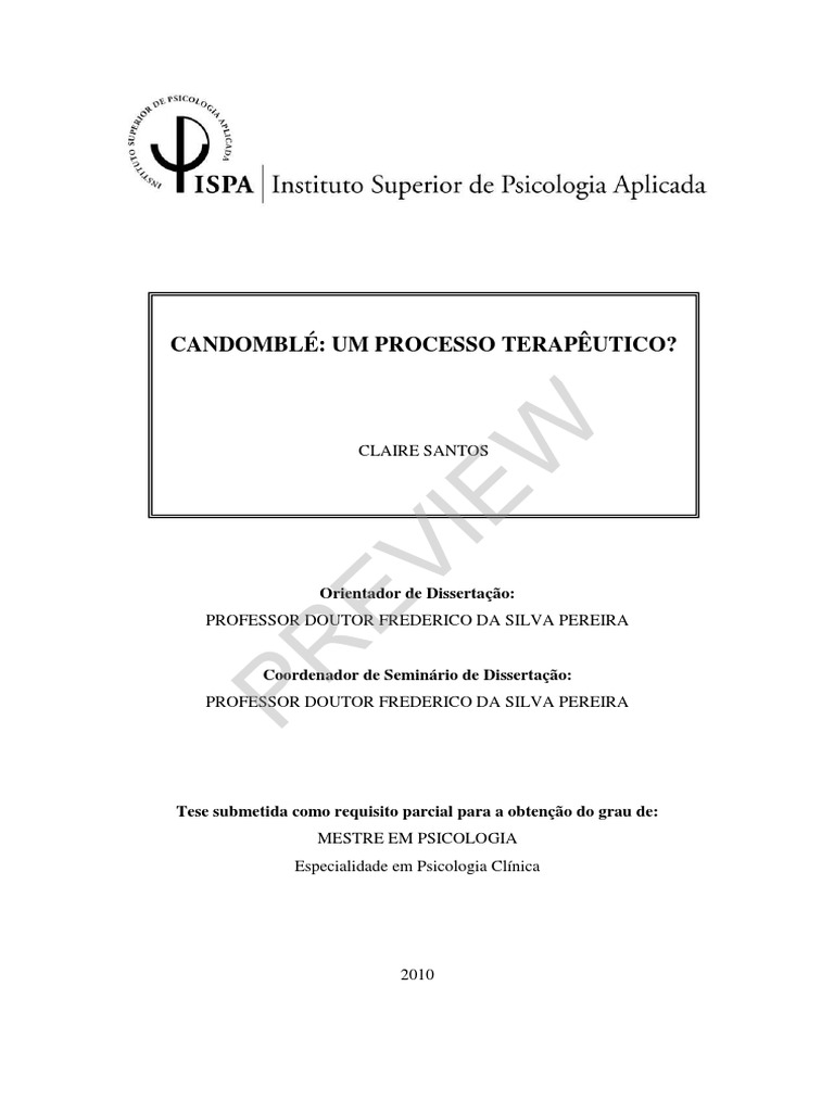 Instituto Superior de Psicologia Aplicada para obtenção de