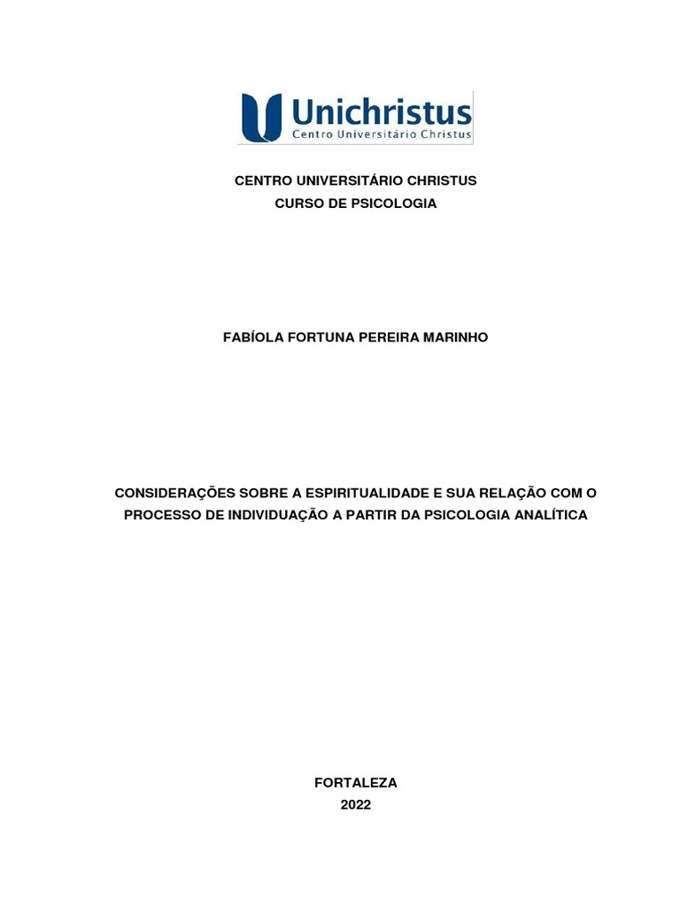 Keywords: Religiosity. Spirituality. Analytical Psychology. Individuation.