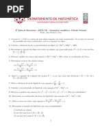 (21) Sejam π o plano x = − e F = (1/4, 0, 0). Determine o lugar geométrico dos pontos