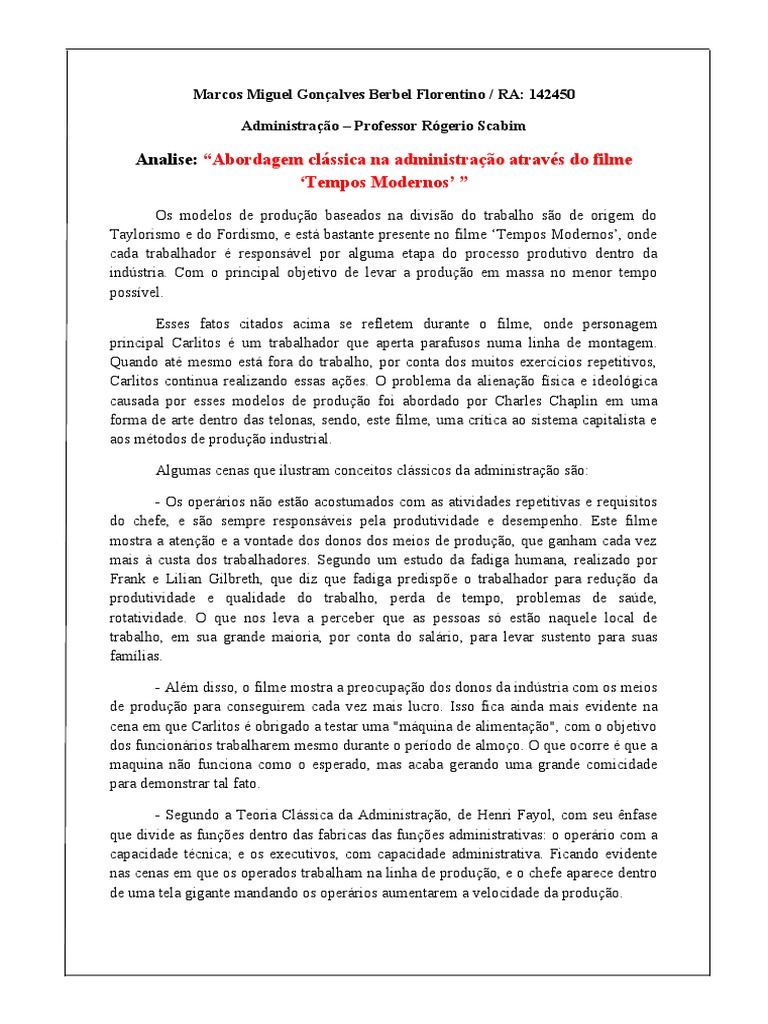 Taylorismo e do Fordismo, e está bastante presente no filme ‘Tempos Modernos’, onde
