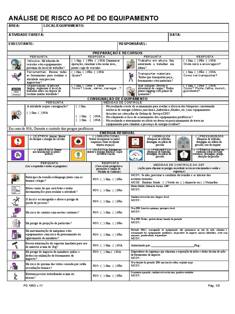 equipamentos com risco de prensamento ou R01: ( ) Sim ( ) Não maçarico, parafusadeira, torqueadeira.