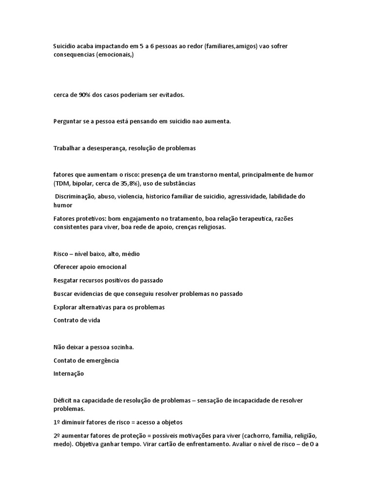 2º aumentar fatores de proteção = possíveis motivações para viver (cachorro, família, religião,