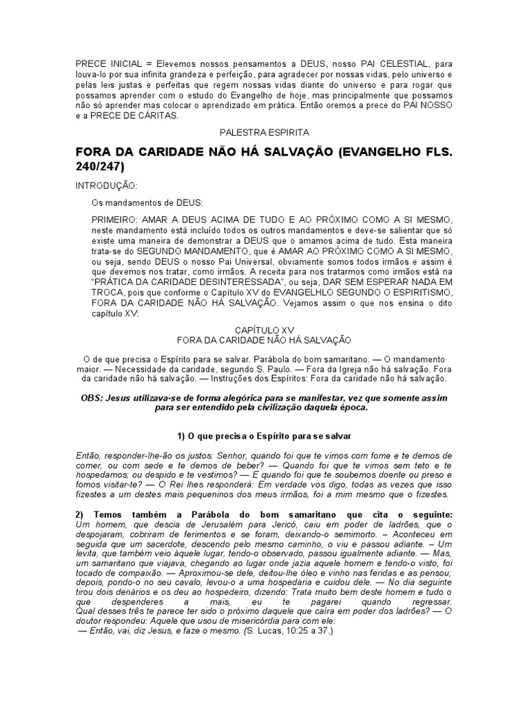 FORA DA CARIDADE NÃO HÁ SALVAÇÃO (EVANGELHO FLS.