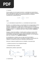 Ao atingir o equilíbrio químico, a velocidade das reações direta e inversa se