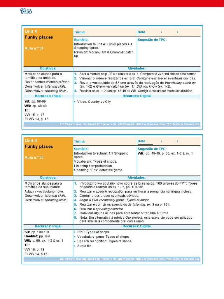 Funky places Sumário: Sugestão de TPC: