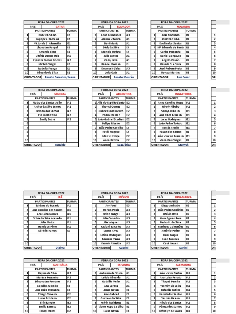 9 Emilly Barreto IE2 9 Victor Hugo da Silva IE1 9 Pâmea dos Santos IA1 9