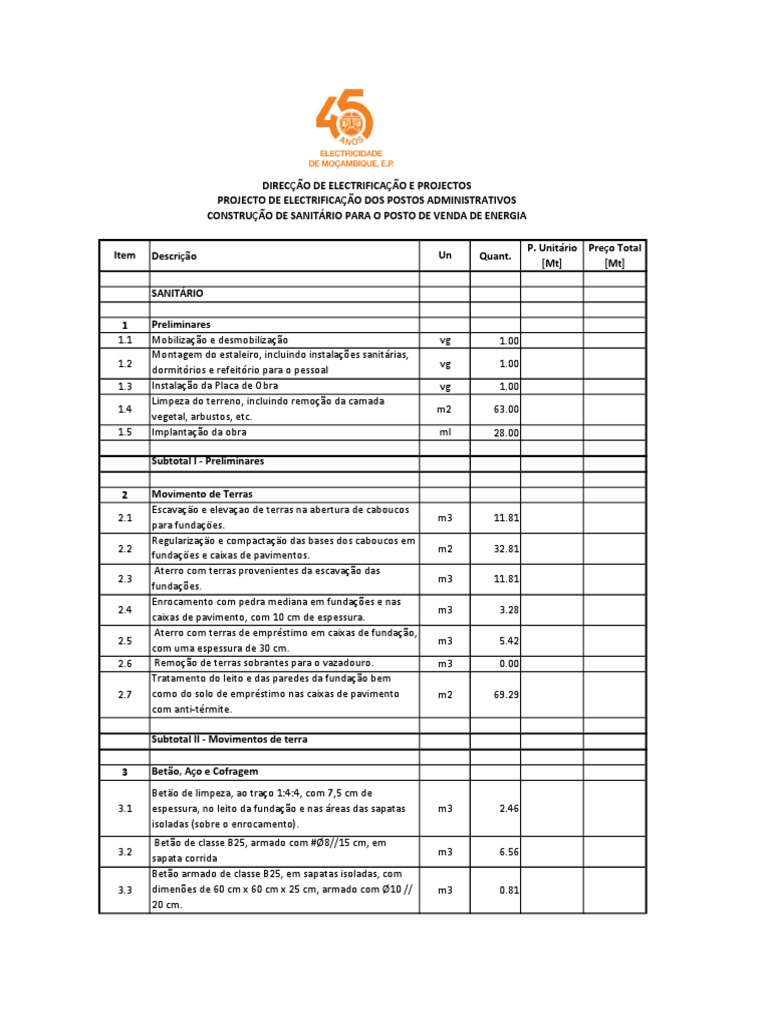 PROJECTO DE ELECTRIFICAÇÃO DOS POSTOS ADMINISTRATIVOS