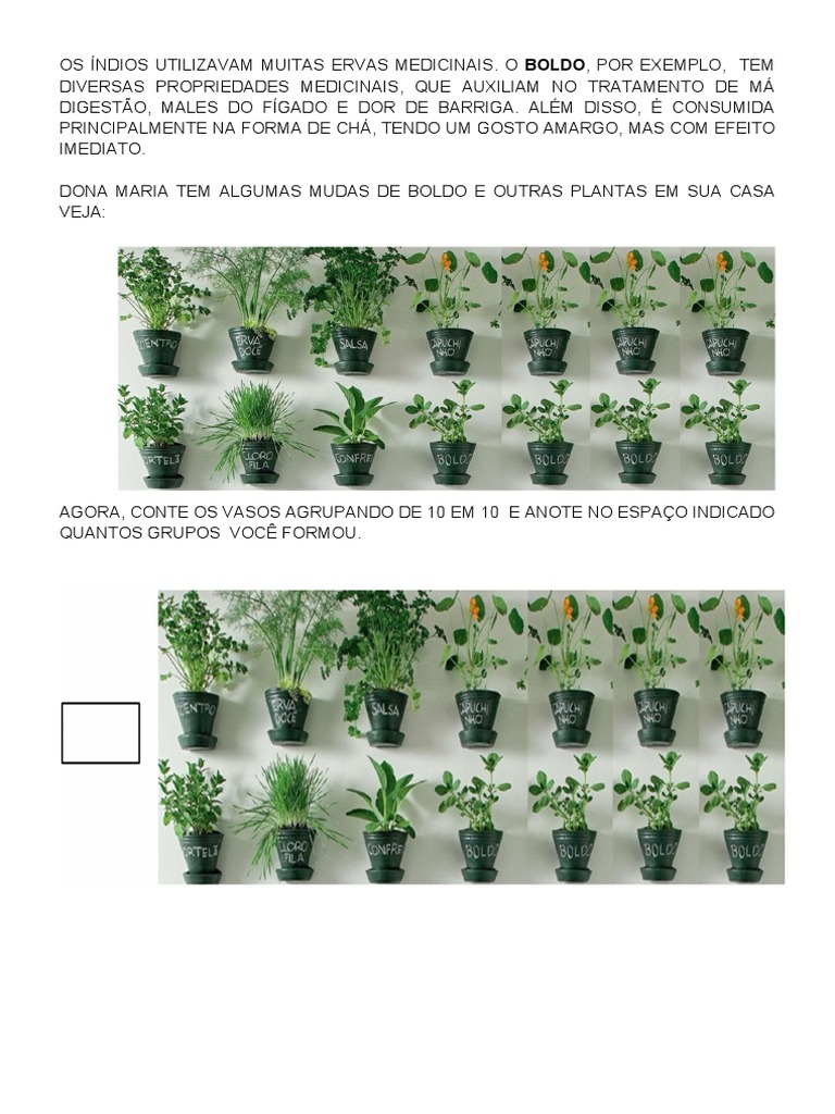 DONA MARIA TEM ALGUMAS MUDAS DE PLANTAS. ELA QUER ORGANIZAR SEUS