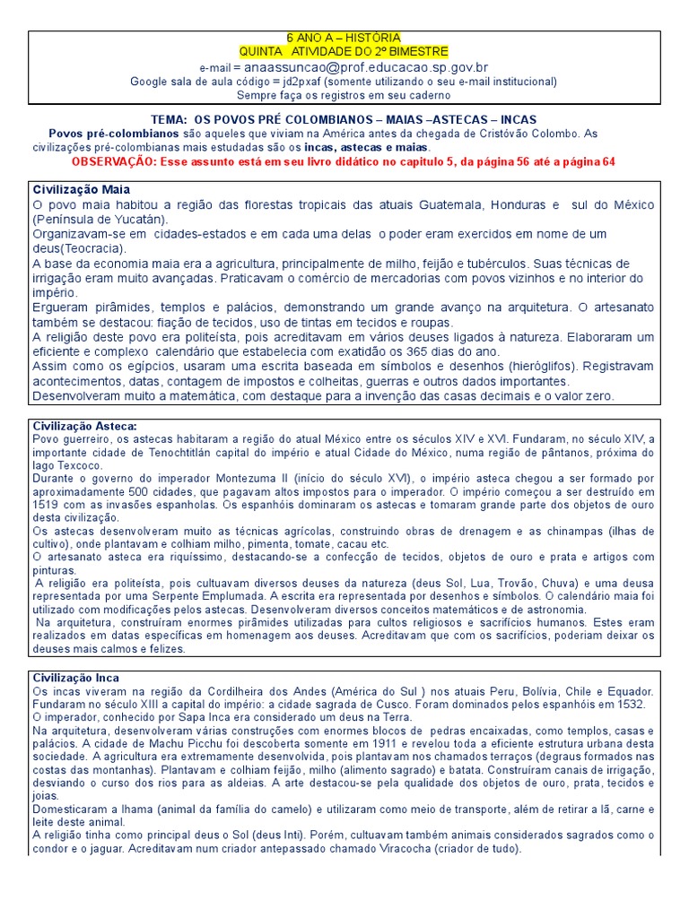 TEMA: OS POVOS PRÉ COLOMBIANOS – MAIAS –ASTECAS – INCAS