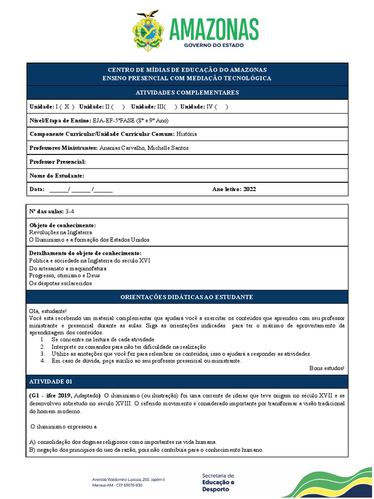 ORIENTAÇÕES DIDÁTICAS AO ESTUDANTE