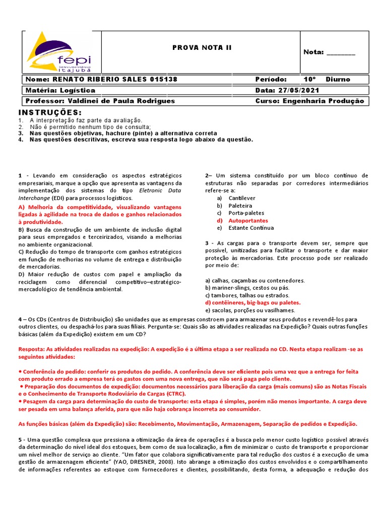 Nome: RENATO RIBERIO SALES 015138 Período: 10º Diurno