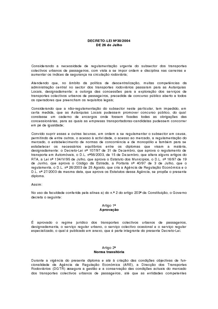 Considerando a necessidade de regulamentao urgente do subsector dos transportes colectivos urbanos de passageiros, com vista a se impor ordem e disciplina nas carreiras e aumentar os ndices de segurana na circulao rodoviria; Atendendo que, no mbito da poltica de descentralizao, muitas competncias da administrao central no sector dos transportes rodovirios passaram para as Autarquias Locais, designadamente: a outorga das concesses para a explorao dos servios de transportes colectivos urbanos de passageiros, precedida de concurso pblico aberto a todos os operadores que preencham os requisitos legais; Considerando que a no-regulamentao do subsector neste particular, tem impedido, em certa medida, que as Autarquias Locais pudessem promover concurso pblico, do qual constasse um caderno de encargos onde fossem fixadas todas as obrigaes das concessionrias, para as quais as empresas transportadoras-candidatas pudessem concorrer em p de igualdade; Convido suprir essas e outras lacunas, em ordem a se regulamentar o subsector em causa, permitindo de entre outros, o acesso activi dade, o acesso ao mercado, a regulamentao do mercado, o estabelecimento de normas de concorrncia e de monoplio e tambm para se estabelecer os necessrios equilbrios entre os diplomas que visam a matria, designadamente: o Decreto-Lei n 107/97 de 31 de Dezembro, que aprova o regulamento de transporte em Automveis, o D.L. n56/2003, de 15 de Dezembro, que altera alguns artigos do RTA, a Lei n 134/IV/95 de Julho, que aprova o Estatuto dos Municpios, o D.L. n 16/97 de 19 de Junho, que aprova o Cdigo da Estrada, a Portaria n 40/97 de 3 de Julho, que o regulamenta, o D.L. n 26/2003 de 25 Agosto, que cria a Agncia de Regulao Econmica e o D.L. n 27/2003 da mesma data, que aprova os Estatutos dessa Agncia, se prope o presente diploma. Assim: No uso da faculdade conferida pela alnea a) do n. 2 do artigo 203 da Constituio, o Governo decreta o seguinte: Artigo 1 Aprovao