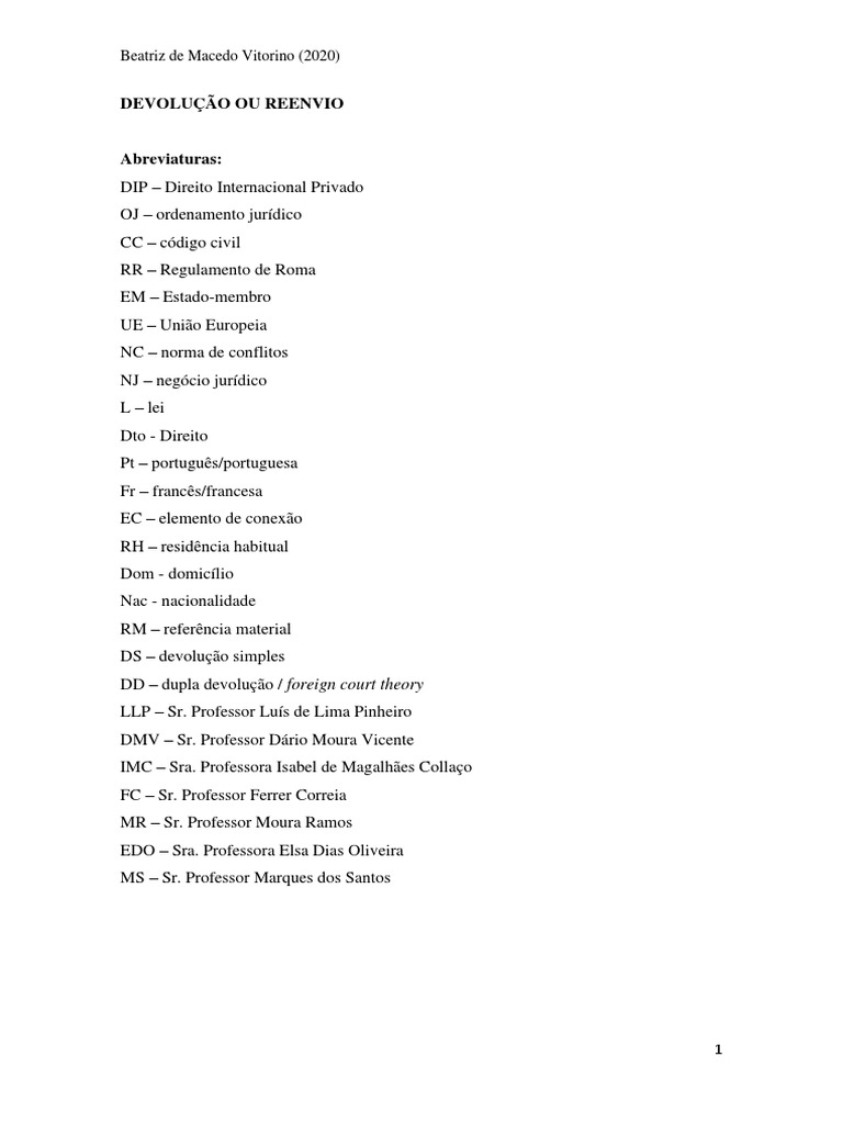 • Código civil → disposições especiais sobre devolução em matéria de forma