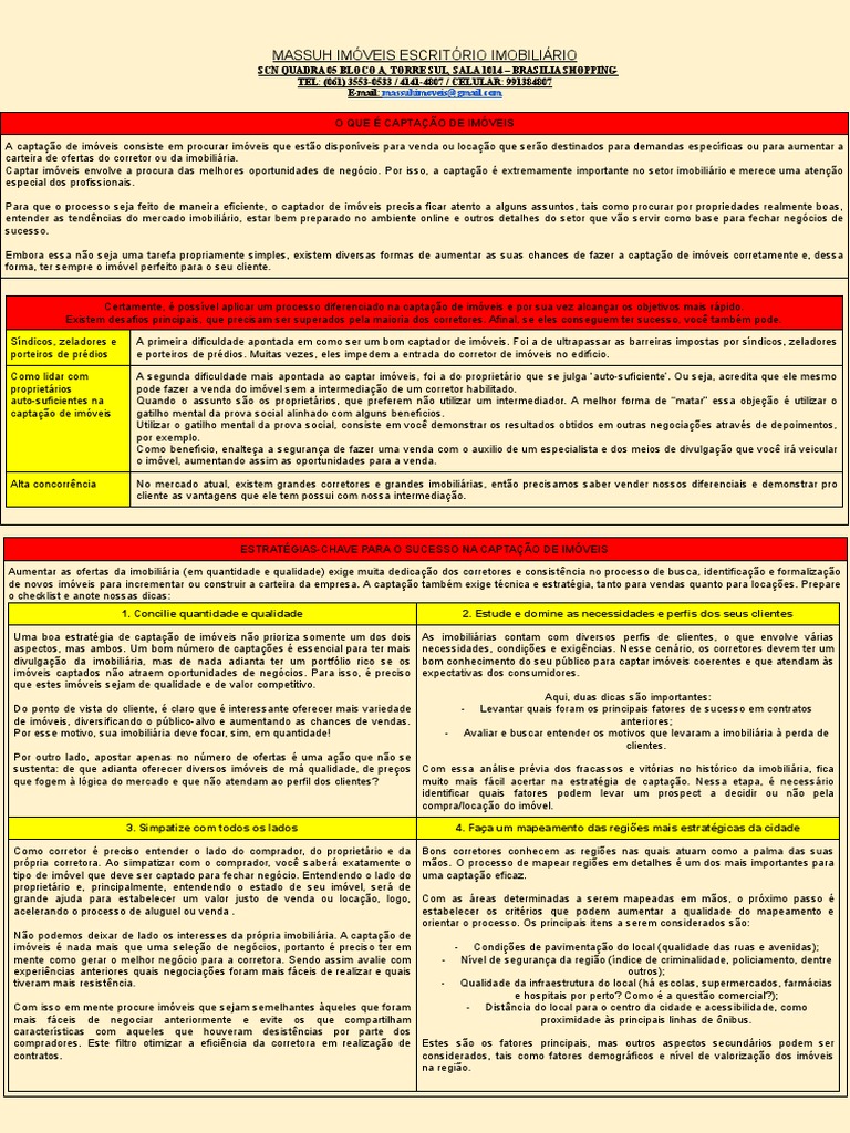 de novos imóveis para incrementar ou construir a carteira da empresa. A captação também exige técnica e estratégia, tanto para vendas quanto para locações. Prepare