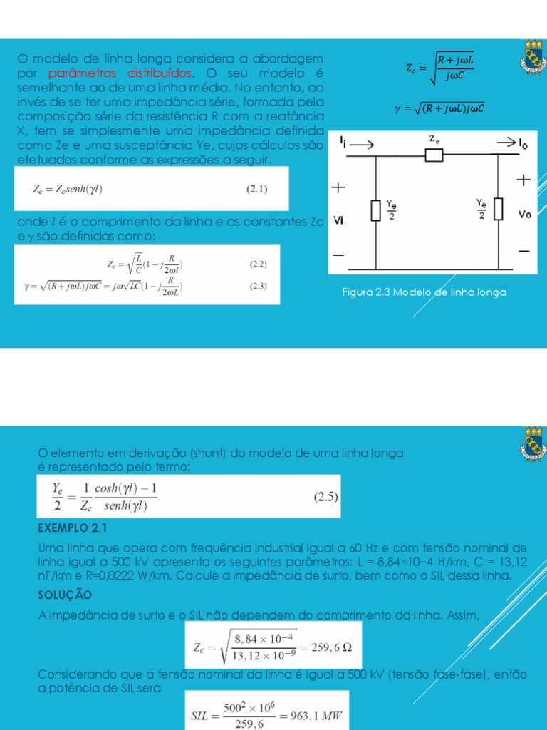 O modelo de linha longa considera a abordagem 𝑅 + 𝑗ω𝐿