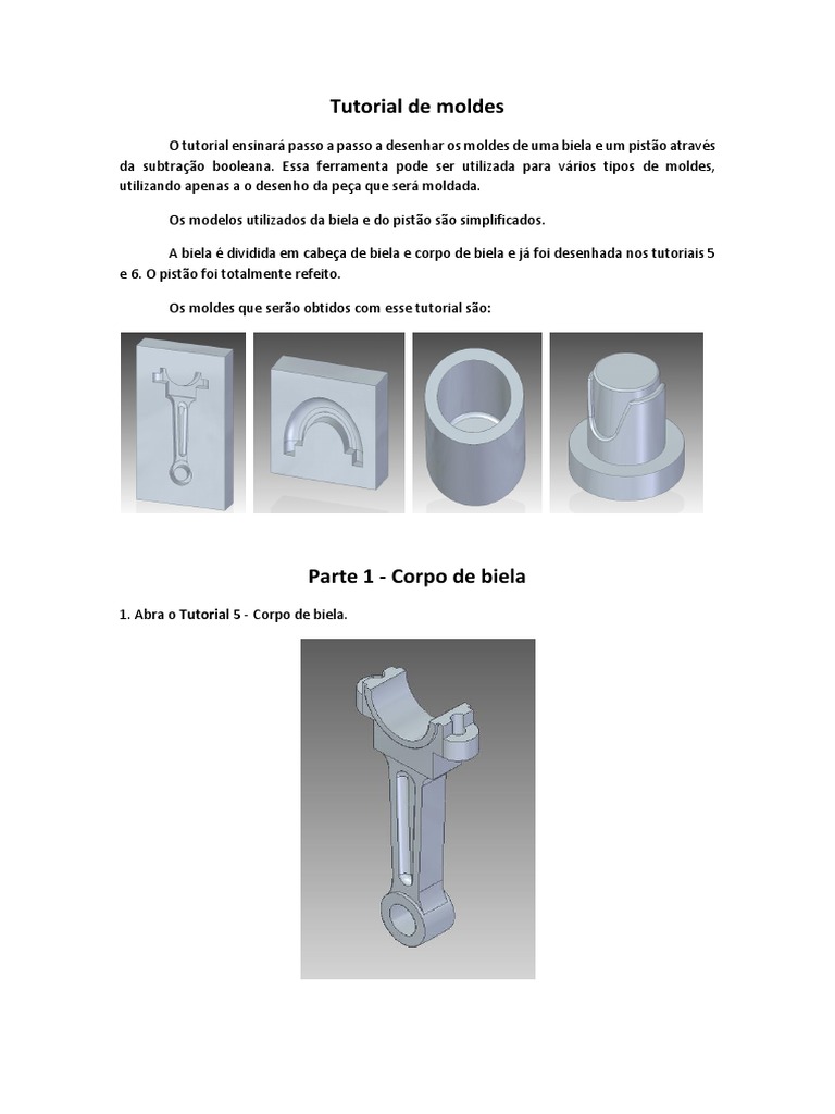O tutorial ensinará passo a passo a desenhar os moldes de uma biela e um pistão através
