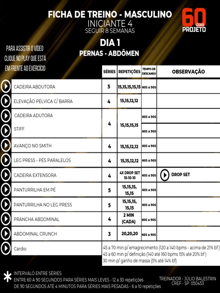 FICHA DE TREINO - MASCULINO