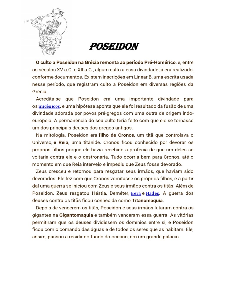 Na mitologia, Poseidon era filho de Cronos, um titã que controlava o